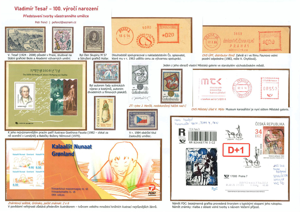Jednostranový exponát Vladimír Tesař - 100. výročí narození / Představení tvorby všestranného umělce, formát A3 na ležato (landscape).