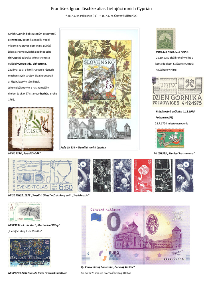 Jednostranový exponát František Ignác Jäschke alias Lietajúci mních Cyprián, formát A4 na stojato (portrait).