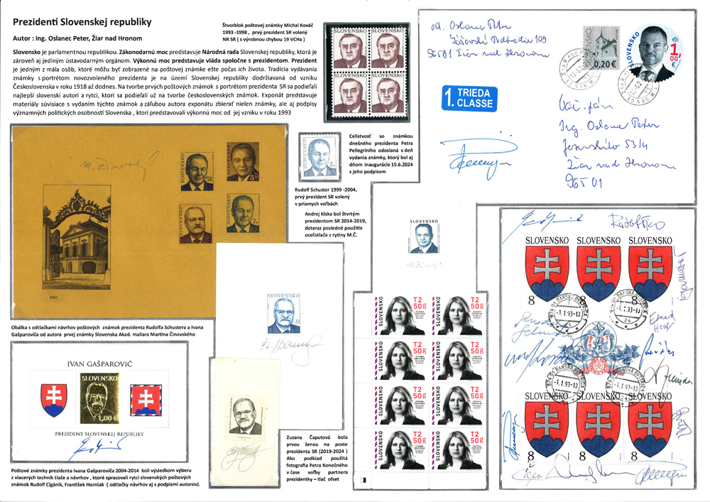 Jednostranový exponát Prezidenti Slovenskej republiky, formát A3 na ležato (landscape).