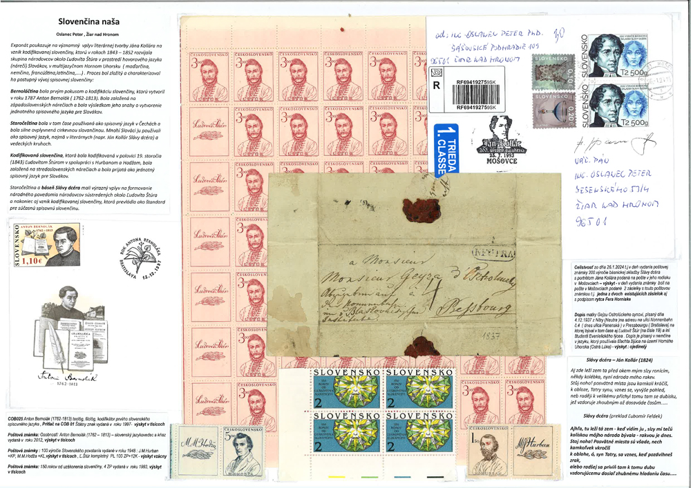 Zameranie exponátu: Tematické spracovanie založené na slovenskej poštovej známke z roku 2024 (Kat. číslo 811) - 200. výročie vydania básnickej skladby Slávy dcéra.