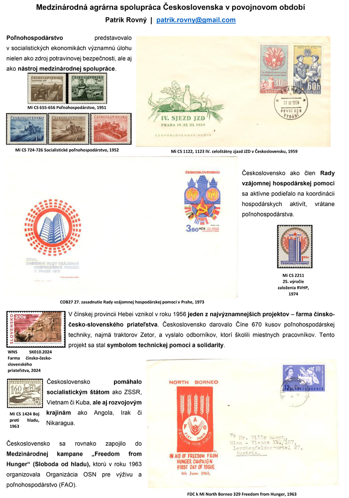 Jednostranový exponát Medzinárodná agrárna spolupráca Československa v povojnovom období, formát A3 na stojato (portrait).