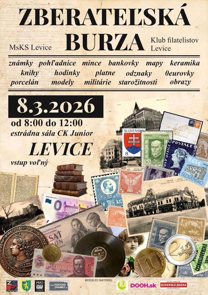Pozvanie na veľkú celoslovenskú zberateľskú burzu s medzinárodnou účasťou v Leviciach.