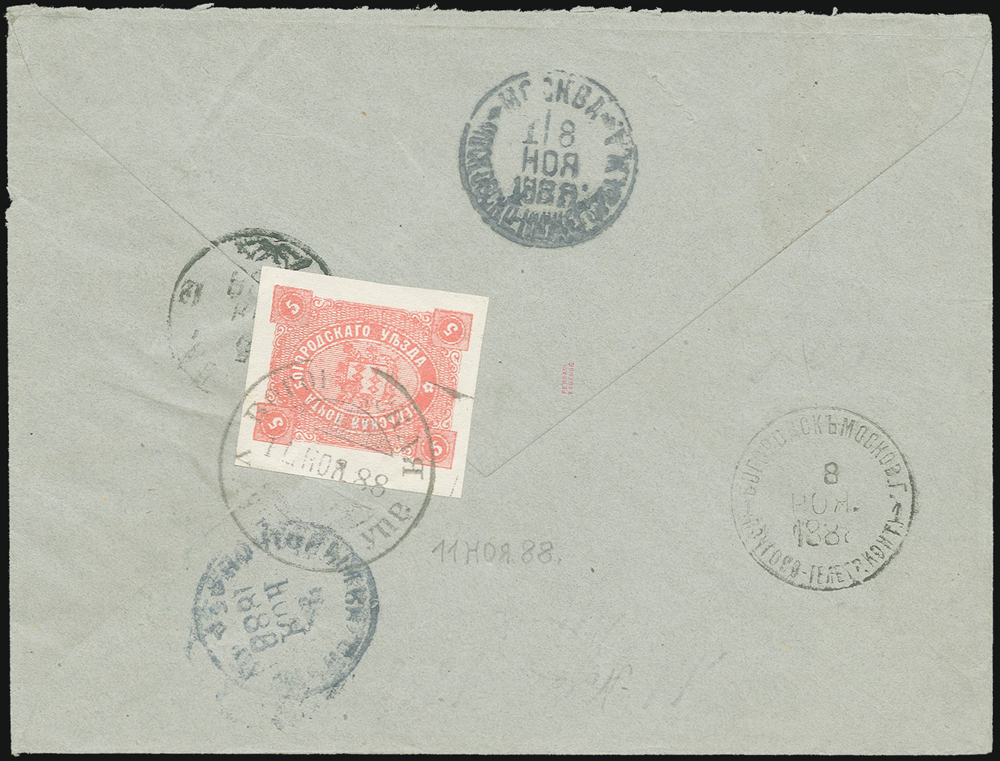 a dofrankovaný známkou Bogorodského zemstva s dátumom 11. novembra 1888.