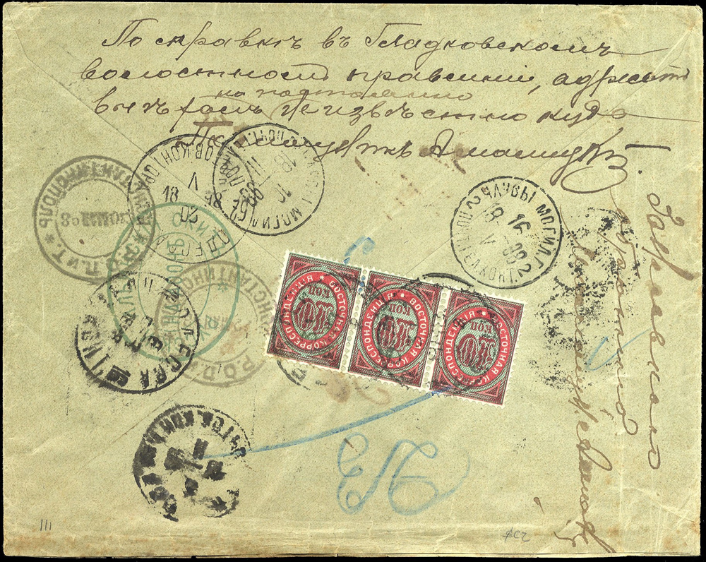 a príchodzia pečiatka ЧАУСЫ МОГИЛ. Г 10 II 1898.