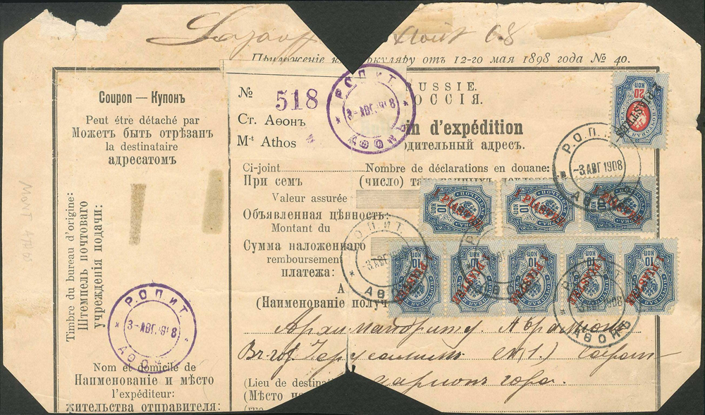 V roku 1911 boli všetky príležitostné známky stiahnuté z obehu a nahradené ruskými s pretlačou v para alebo piastroch.