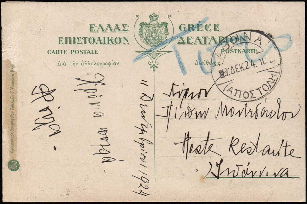 s pečiatkou ΙΩΑΝΝΙΝΑ 11 ΔΕΚ 1924.