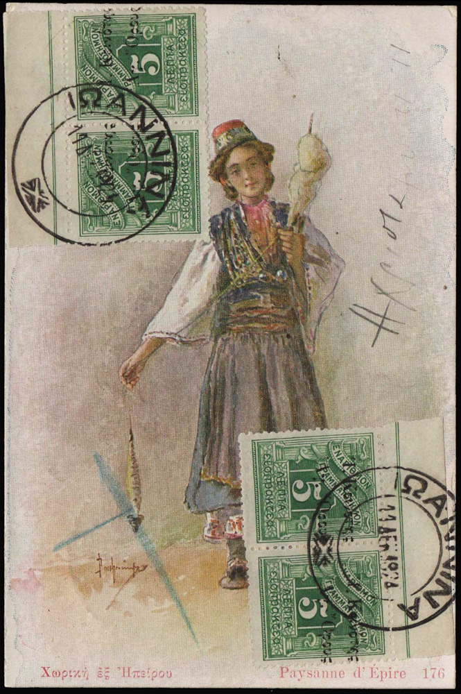 Pohľadnica poslaná 9. decembra 1924 z Atén do Janiny bez vyplateného poštovného,