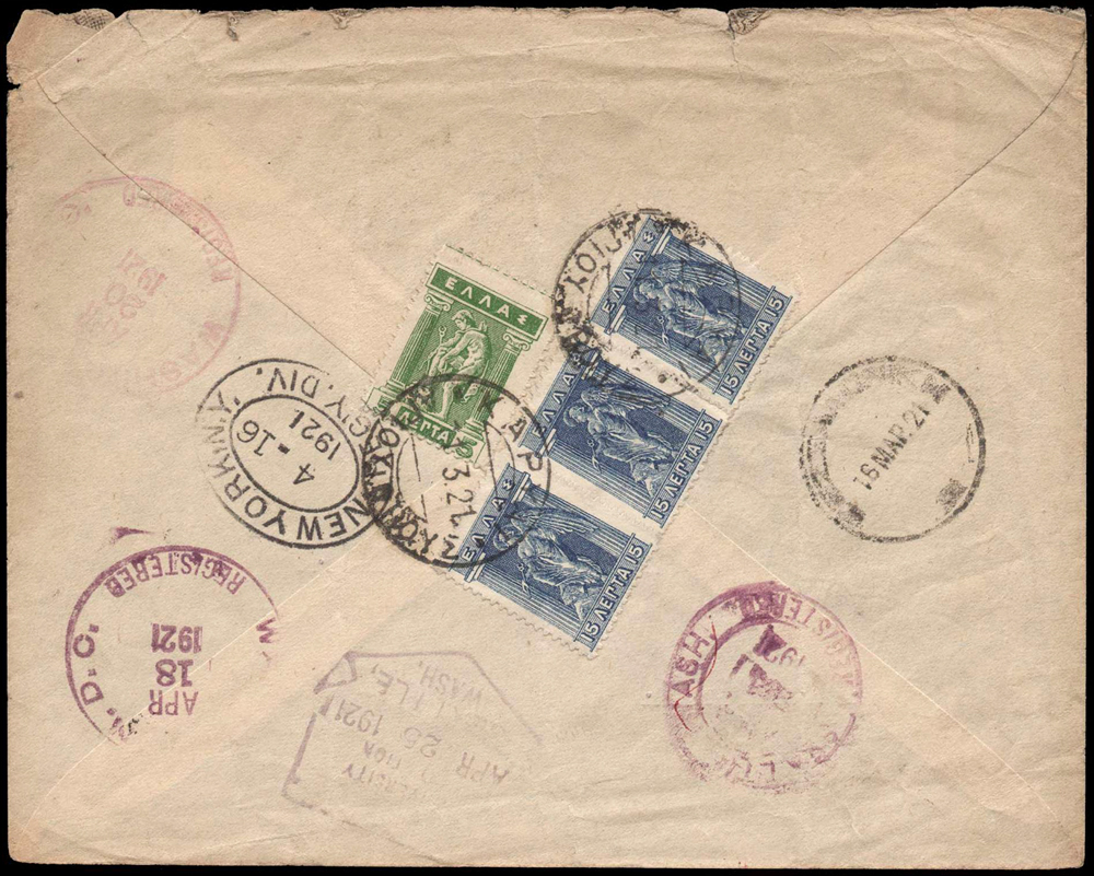 tranzitná fialová pečiatka WASHINGTON. D. C. APR 20 1921,