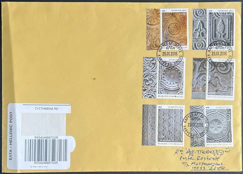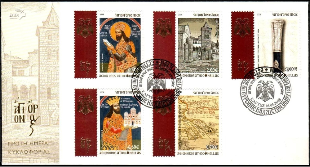 Grécka správa začala 16. mája 2008 vydávať definitívne poštové známky s textom AΓΙΟΝ OPOΣ AΘΩΣ / AGION OROS ATHOC / HELLAS, pre použitie na dvoch poštách na Mont Athose, avšak s platnosťou na celom území Grécka.